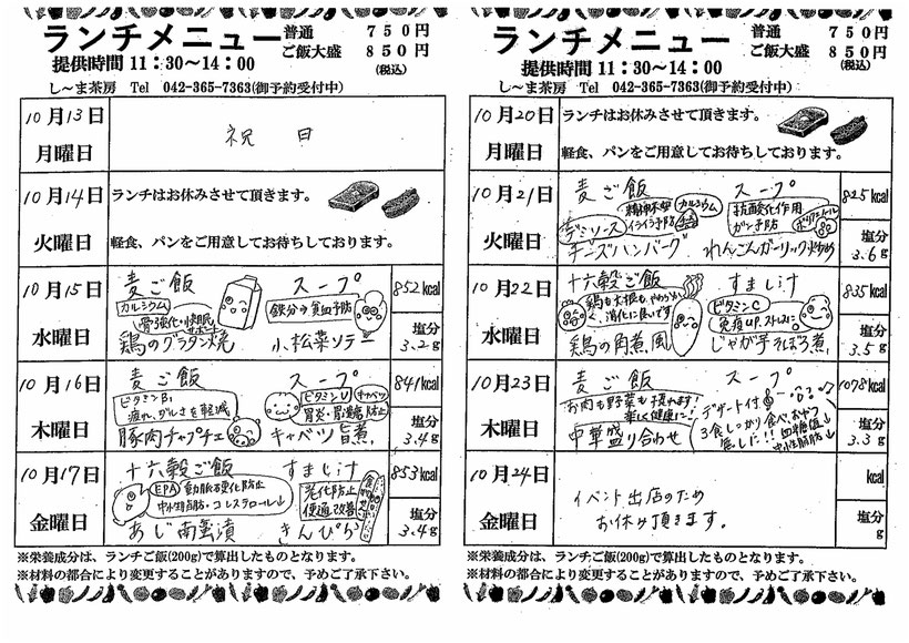 (月曜日が祝日の場合、火曜日のランチはお休みになります)